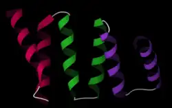The tetratricopeptide repeat (TPR) is a structural motif. It consists of a degenerate 34 amino acid tandem repeat identified in a wide variety of proteins. It is found in tandem arrays of 3–16 motifs,[1] which form scaffolds to mediate protein–protein interactions and often the assembly of multiprotein complexes. These alpha-helix pair repeats usually fold together to produce a single, linear solenoid domain called a TPR domain. Proteins with such domains include the anaphase-promoting complex (APC) subunits cdc16, cdc23 and cdc27, the NADPH oxidase subunit p67-phox, hsp90-binding immunophilins, transcription factors, the protein kinase R (PKR), the major receptor for peroxisomal matrix protein import PEX5, protein arginine methyltransferase 9 (PRMT9), and mitochondrial import proteins.