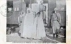 The insurgents now moved on to another farm owned by a settler named Bertrand. In contrast with Salle, Bertrand had worked to establish good relations with his Fraichiche neighbours.[7] At this farm three occupants all converted to avoid death but one, an Italian named Delrio, refused, so he was killed and his body burned. The farm was not however looted and the bedouin moved on to the mines at Jebel ech Chambi where all the Europeans were summoned to convert. All the prisoners were made to wear Tunisian dress and sent to the marabout Amor ben Othman, who had remained behind at the encampment.[9]
