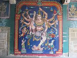 Tirugnana Sambandar, a 7th-century Tamil Saivite poet, venerated Thayumanavar in eleven verses in Tevaram, compiled as the First Tirumurai.[20][21] Appar, a contemporary of Sambandar, also venerated Thayumanavar in 10 verses in Tevaram, compiled as the Fifth Tirumurai.[22][23] As the temple is revered in Tevaram, it is classified as Paadal Petra Sthalam, one of the 276 temples that find mention in the Saiva canon.[1] Muthukumaraswamy in the temple is revered in Tirupugazh, the hymns of Arunagirinathar, a 15th-century saint.[17] Thayumanavar (1705–1742), a Saiva Siddantha saint has glorified the presiding deity in his verses.[24][25] There is a mutt named after the saint in the South Street of Rockfort, which celebrates his annual birth anniversary.[26]