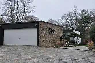 The Allen House is located in southwestern Westport, on 1.1 acres (0.45 ha) set between Burritt's Landing North (a private lane) and Saugatuck Avenue (Connecticut Route 136). The house is set near the northern edge of the property, overlooking a small pond. It is a single-story wood-frame structure, its exterior finished in fieldstone, redwood, and glass. It is covered by a flat roof. The house is in the shape of an H, with two substantial wings connected by a central hyphen. The main entrance is on one side of the hyphen, and a private courtyard with views of the pond is on the other side. The west wing houses the public rooms as well as the master bedroom, and has a lower level open to the pond due to the sloping terrain. The east wing houses the garage, a guest bedroom, and library.[3]