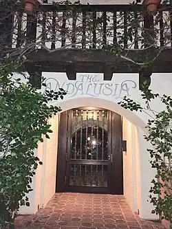 Architects Arthur and Nina Zwebell designed the structure around a richly landscaped interior courtyard.[3] Materials used reflected those commonly used in the Spanish Colonial Revival, Mediterranean Revival, Moorish Revival, and Mission Revival traditions: exposed wooden beams, cantilevered beams, carved wood, wrought iron, terracotta roof tiles, lightly textured buff-colored stucco, cast concrete, and brick.[4][5][6][7] Over the years, a cast of actors from the Golden Age of Hollywood lived at the Andalusia, including Sondra Locke, Clara Bow, Marlon Brando, Jean Hagen, John Payne, Teresa Wright, Louis L'Amour, Claire Bloom, and Cesar Romero.[2][8] Later, actor Jason Schwartzman occupied one of the units.[9] The building is located in a historic neighborhood south of Sunset Boulevard near the Chateau Marmont. The same block of Havenhurst Drive also includes two other apartment buildings listed on the National Register of Historic Places: the Colonial House (1416 Havenhurst Dr.) and the Ronda (1400–1414 Havenhurst Dr.).