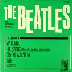 In an attempt to capitalize on The Beatles' success, this American LP, holding only four of these eight songs, was released by MGM Records in both mono (catalogue number E-4215) and rechanneled stereo (SE-4215). The latter notes erroneously that the musical arranger for "Cry for a Shadow" is Sheridan.[4] Contrary to the labels on the disc, the sleeve shows the album's title as The Beatles with Tony Sheridan and Guests.[5] This record was only moderately successful and peaked at No. 68 on 18 April 1964 on the Billboard album chart[6] and remained fourteen weeks in this chart.[7]