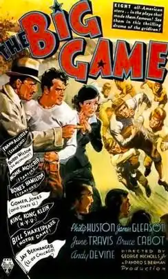 The Big Game is a 1936 American sports drama film directed by George Nicholls, Jr. and produced by RKO Radio Pictures, which released the film on October 9, 1936. The screenplay was written by Irwin Shaw, adapted from the 1936 novel of the same name by Francis Wallace. The film stars Philip Huston, James Gleason, June Travis, Bruce Cabot and Andy Devine. Huston (1908–1980) was a respected New York stage actor, who also had prominent roles in a number of motion pictures and, later, acted in television productions, as well.