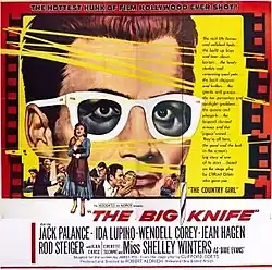 The Big Knife is a 1955 American melodrama film directed and produced by Robert Aldrich from a screenplay by James Poe based on the 1949 play by Clifford Odets. The film stars Jack Palance, Ida Lupino, Wendell Corey, Jean Hagen, Rod Steiger, Shelley Winters, Ilka Chase, and Everett Sloane.[5]