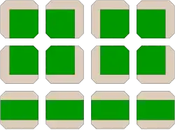 The dimensions of the blocks are given by the aforementioned distances between the longitudinal axes of the streets and the same width of these roads, so that by establishing a standard width of 20 meters, the blocks are formed by quadrilaterals of 113.3 meters, their vertices truncated in the form of a chamfer of 15 meters, which gives a block area of 1.24 hectares, contrary to popular belief that they have an exact area of 1 hectare. The figure of 113.3 meters has had various justifications. Manuel de Solà-Morales considers that the 5 blocks between the old bastion of Tallers (now Plaça Universitat) and that of Jonqueres (now Plaça Urquinaona) are the ones that mark the factor from which the rest is built.[27]