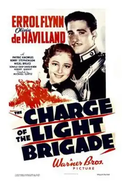 The Charge of the Light Brigade is a 1936 American historical adventure film from Warner Bros., starring Errol Flynn and Olivia de Havilland.[4][5] It was directed by Michael Curtiz and produced by Samuel Bischoff, with Hal B. Wallis as the executive producer. The film's screenplay is by Michael Jacoby and Rowland Leigh, from a story by Michael Jacoby, and based on the 1854 poem "The Charge of the Light Brigade" by Alfred, Lord Tennyson. The music score was composed by Max Steiner, his first for Warner Bros., and the cinematography was by Sol Polito. Scenes were shot at the following California locations: Lone Pine, Sherwood Lake, Lasky Mesa, Chatsworth, and Sonora. The Sierra Nevada mountains were used for the Khyber Pass scenes.[6]