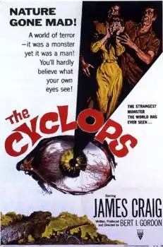 The Cyclops is a 1957 American science fiction horror film written, produced and directed by Bert I. Gordon, starring James Craig, Lon Chaney Jr. and Gloria Talbott. The theme of a monster created as a result of radioactivity was a common one in the 1950s.[2]