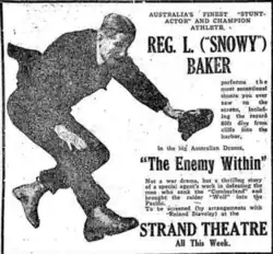 - ^ "Snowy Baker, Movie Actor". Referee. No. 1627. New South Wales, Australia. 6 March 1918. p. 14. Retrieved 20 April 2024 – via National Library of Australia.