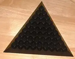 It contains a triangular base plate and 281 dice of four different colours, and a rule book that gives rules for some 50+ games. Most of the games are centered on building or demolishing pyramids of dice, but there are also racing games and games of skill. The game has been originally published by Diego Rodriguez (Reinhold Wittig), Göttingen, in 1979.[1][2][4][5]