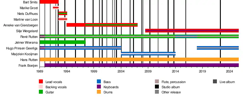 In 2007, van Giersbergen left the group to focus on her new band Agua de Annique.[1] The band replaced her with Wergeland, of the band Octavia Sperati. The band went on hiatus from 2014 to 2018, and their most recent album, Beautiful Distortion, was released on 29 April 2022.