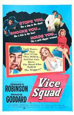 Vice Squad is a 1953 American film noir crime film directed by Arnold Laven and starring Edward G. Robinson and Paulette Goddard.[2] The film is also known as The Girl in Room 17.[3]