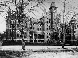 In 1888—1889 Congress approved funds for an elaborate new home. An additional appropriation of $80,000 ($75,000 for building and $5,000 for contingent expenses)[6] paid for the construction of a large building at 145 South 500 East in Salt Lake City.[3][7] The home opened in June 1889. It never had enough residents to fill its capacious accommodation. It closed in 1893.[4]