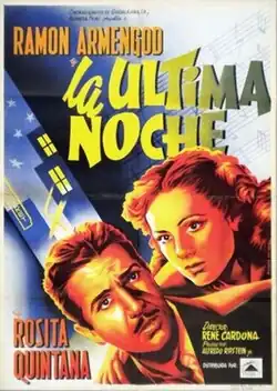 The Last Night (Spanish: La última noche) is a 1948 Mexican drama film directed by René Cardona and starring Ramón Armengod, Rosita Quintana and Óscar Pulido.[1] [2] It was shot at the Azteca Studios in Mexico City. The film's sets were designed by the art director Luis Moya.