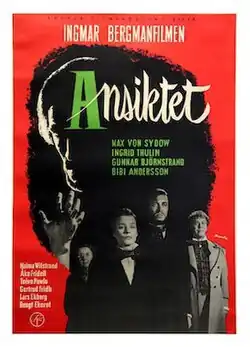 Ansiktet (lit.'The Face'[1]), also released as The Magician, is a 1958 Swedish film written and directed by Ingmar Bergman, starring Max von Sydow and Ingrid Thulin. The plot follows a traveling magician named Albert Vogler, whose allegedly supernatural live shows are challenged by the skeptical population of a small village.