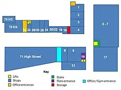 Sevenoaks Furniture extended the upper floor of Unit 1 in approx. 2004. Unit 1 has the largest upper floor out of units 1–4. Due to the upper floors being small Shoe Zone also has the 1st floor of Unit 3 and Emporium Seven were seeking permission to extend the first floor of unit 1 making the 1st floor almost as big as the ground floor.