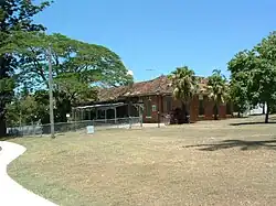 Wards A and B (1948) are two similar U-shaped blocks that back onto Wolston Park Road. They are constructed of cream brick with hipped, corrugated colourbond steel roofs with boxed eaves. The wings of the buildings enclose grassy courtyards, which are surrounded by verandahs. The Kitchen Block (1948) is located in the middle of the Wacol Repatriation Pavilion complex, between Wards A and B. It is two-storeyed and is constructed of the same cream brick with corrugated colourbond steel roof with fleche. It has an open-fronted canteen at the front of the building (facing northeast), opening via folding timber doors onto a terraced lawn area. The rear of the building is accessed by a service driveway from Wolston Park Road. Ward C (1948) is H-shaped in plan and is also constructed of cream brick with a hipped, corrugated colourbond steel roof. It is located at the end of Barrett Drive and has a roofed terrace on the northwest elevation. The Recreation Hall is located to the north of Ward C. The grounds consist of a mix of evenly sloped lawns with trees randomly planted between the buildings. Clumps of Oleander bushes are formally spaced along both sides of the lower entry drive. A cricket oval (1954–5) is located to the southeast of the complex. The cricket oval has a white painted picket perimeter fence and a timber sight-screen.[1]