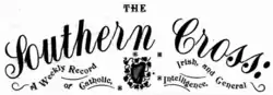 The Southern Cross (subtitled: A Weekly Record of Catholic, Irish, and General News) was initiated on 5 July 1889[3] by the Southern Cross Printing and Publishing Company, with the aim of publishing news about and for the Catholic community. It succeeded The Catholic Monthly, a magazine published by Archbishop C. A. Reynolds (1834–1893) and from which he was "anxious to be relieved".[4] The original board of management consisted of Archdeacon Russell (chairman), the Rev. G. Williams, Hon. James O'Loghlin, M.L.C., Dr. O'Connell J.P. and Mr. W. A. Dempsey, J.P. O'Loghlin was appointed managing editor, with an office at 28 Waymouth Street, Adelaide.[5]