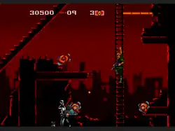 The Terminator is a platform shoot 'em up game. It includes 10 levels. Playing as soldier Kyle Reese, the player travels through a Skynet facility during the first four levels, set in 2029. After battling Skynet's Terminator machines, Kyle finds a time machine and travels to Los Angeles 1984, where the remainder of the game takes place. Kyle locates Sarah Connor and protects her from the Terminator, a machine sent from the future by Skynet. The Terminator is tasked with killing Sarah, preventing her future son John Connor from leading the human resistance against Skynet.[1][2][3][4] The player can use various weapons and has unlimited ammunition. The player can crouch, jump, and shoot in multiple directions.[1][2][4]