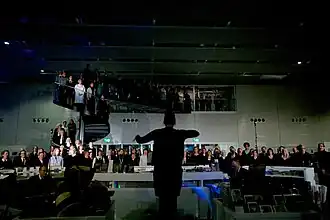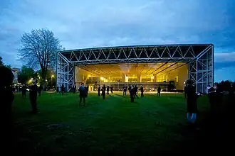 The Observatory was a site-responsive piece presented as part of the Norfolk & Norwich Festival and created as part of a partnership with the Sainsbury Centre for Visual Arts (SCVA) and the University of East Anglia (UEA).[11] The piece was an exploration of humankind's relationship with space - and our gradual attempts to understand and explore it with the poetic, the scientific and the musical. Weightlessness, distance, fear of the unknown, infinity and astronomical geometry inspired this piece which was staged in and around the SCVA. The SCVA provided a futuristic background for this piece which informed the design of the show – and also the opportunity for the audience to experience this iconic building quite differently.