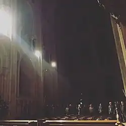 This site-responsive piece took place in Norwich Cathedral on 23 January 2017 – making extensive use of the space in a carefully choreographed promenade performance. The seating was removed from the nave to allow the performers to move freely throughout the space and to increase the effect of the lighting design.[19][12]