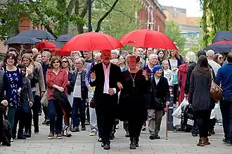 Norwich Over the Water was a promenade outdoor choral piece around the River Wensum and Norwich University of the Arts quad in Norwich's historic centre of the textile and dyeing industries.[12] Taking place on a Saturday afternoon, the piece started at The Octagon Chapel and processed across bridges to a finale in the quad of Norwich University of the Arts.