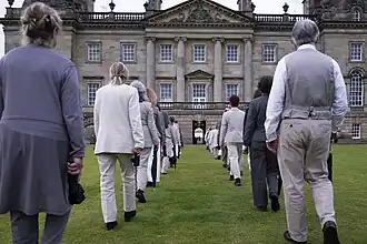 This piece was performed on 6 July 2019 at Houghton Hall. It was a promenade performance in the grounds of the Palladian house built in the 1720s for Britain's first Prime Minister, at a time when they were hosting a year-long exhibition (Nature and Inspiration) of works by Henry Moore, James Turrell (the Skyspace), Richard Long (the Earth Sky pieces) and Rachel Whiteread.
