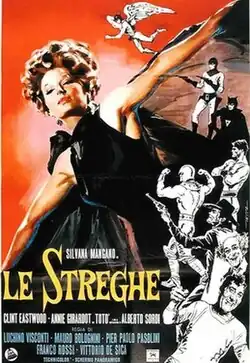 The Witches (Italian: Le streghe) is a 1967 commedia all'italiana anthology film produced by Dino De Laurentiis in 1965.[1] It consists of five comic stories dealing with the roles of women in Italian society, directed by Luchino Visconti, Mauro Bolognini, Pier Paolo Pasolini, Franco Rossi and Vittorio De Sica. The film stars Silvana Mangano and features Clint Eastwood, Annie Girardot, Totò and Alberto Sordi.[2] It was the last film starring Totò to be released in his lifetime.