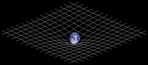 Two-dimensional visualization of space-time distortion. The presence of matter changes the geometry of spacetime, this (curved) geometry being interpreted as gravity.