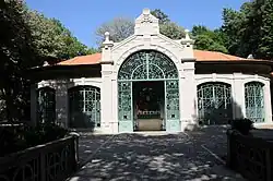 On 5 March 1904, the Viscount of Peso solicited permission to explore the mineral water springs on her property. Yet, on 11 November 1904, a dispatch delivered to the Empresa Santos, Sobral & Co. a reserved perimeter of 15 hectares for the exploration of mineral springs, allowing the company to begin its expansion.[1] These surveys were concluded in August 1906: by 1907, the flow of mineral water had expanded from 2,482 litres (656 US gal) per day (1904) to 8,000 litres (2,100 US gal) per day. The company decided to construct a pavilion in order to substitute the pump room that existed.[1] This work, begun in 1909, was under the direction of engineer Couto dos Santos, for a cost of 43 contos, with testing of the water undertaken by professor Charles Lepierre and Dr. António Cruz Magalhães.[1]
