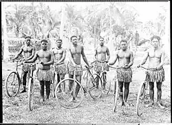 Thomas McMahon, born in 1864, made a first trip to New Guinea in 1915, he then toured the Pacific till 1922 in order to advocate Australian colonialism, tourism and economic development in the area. He journeyed Nauru, Banaba, the Gilbert islands, the Marshall islands, the Solomon Islands, the New Hebrides, Fiji and the Torres strait Islands.[1][2]