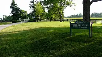 Three Chimneys Farm is an American Thoroughbred race horse breeding farm in Midway, Kentucky, established in 1972 by Mr. & Mrs. Robert N. Clay. Three Chimneys has been home to a number of famous horses including U.S. Triple Crown champion Seattle Slew, U.S. Filly Triple Crown champion Chris Evert, as well as Silver Charm, Chief's Crown, Genuine Risk, Point Given, Slew o' Gold, Capote, Smarty Jones, and Big Brown.
