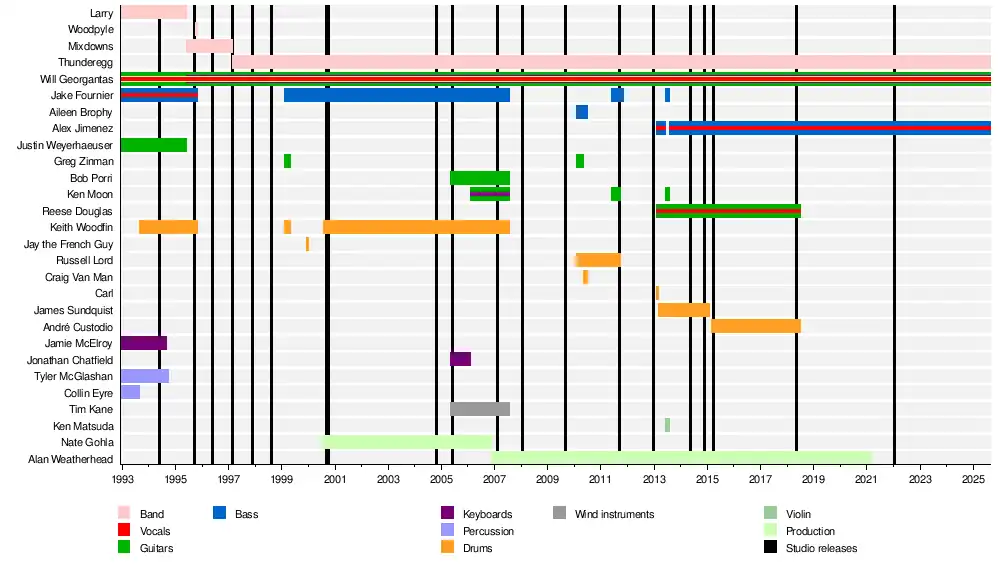 | Past members | Jake Fournier Keith Woodfin Bob Porri Tim Kane Jonathan Chatfield Nathan Gohla Ken Moon Greg "Action" Zinman Aileen Brophy Russell Lord Ken Matsuda James Sundquist |