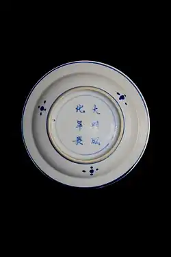 Tianqi porcelain or ko sometsuke (古染付け) refers to Chinese underglaze blue porcelain made in the unofficial kilns of Jingdezhen for a largely Japanese market in the 17th century. The term Tianqi (天啓; Tenkei in Japanese) is a reference to the era name of the reign of the Tianqi Emperor (r. 1621–1628) during the late Ming dynasty, but the style and the name are not limited to his reign. Over the same period the related transitional porcelain was being made.