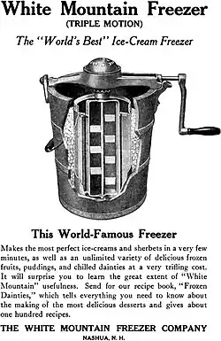 - Refrigeration is the process of removing heat from an enclosed space, or from a substance, and moving it to a place where it is unobjectionable. The primary purpose of refrigeration is lowering the temperature of the enclosed space or substance and then maintaining that lower temperature. The American inventor Oliver Evans, acclaimed as the "father of refrigeration", invented the vapor-compression refrigeration machine in 1805. Heat would be removed from the environment by recycling vaporized refrigerant, where it would move through a compressor and condenser, where it would eventually revert to a liquid form in order to repeat the refrigeration process over again. However, no such refrigeration unit was built by Evans.[47] In 1834, Jacob Perkins modified Evans' original design, building the world's first refrigerator and filing the first legal patent for refrigeration using vapor-compression.[48] John Gorrie, an American doctor from Florida, invented the first mechanical refrigeration unit in 1841, based on Evans' original invention to make ice in order to cool the air for yellow fever patients. Gorrie's mechanical refrigeration unit was issued a patent in 1851.[49] American professor Alexander C. Twining of Cleveland, Ohio patented an early vapor-compression refrigerator in 1853 that was fully capable of producing a ton of ice per day.[50] In 1913, refrigerators for home and domestic use were invented by Fred W. Wolf of Fort Wayne, Indiana with models consisting of a unit that was mounted on top of an ice box.[51] A self-contained refrigerator, with a compressor on the bottom of the cabinet was invented by Alfred Mellowes in 1916. Mellowes produced this refrigerator commercially but was bought out by William C. Durant in 1918, who started the Frigidaire Company in order to begin the first mass-production of refrigerators.[52]