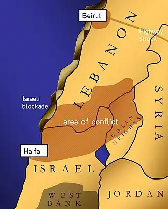 On July 15, Israel attacked commercial ports in the towns of Beirut and Tripoli, as well as ports in Jounieh and Amsheet, two predominantly Christian towns.[67]