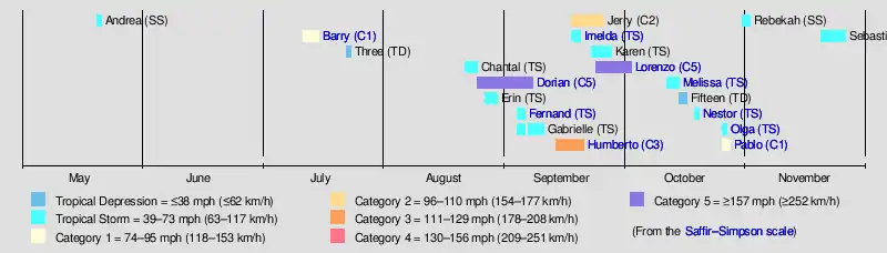 | Timeline of the 2019 Atlantic hurricane season | |||||