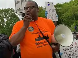 Jackson at a 2020 George Floyd protest in Franklin Park