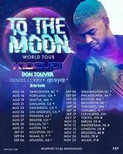 The To the Moon World Tour[1] was the fifth concert tour by American musician Kid Cudi. The excursion, which was his first tour in five years, also served as his first arena tour. The tour began in Portland on August 18, 2022 and concluded in Milan on November 22, 2022.[2] The tour dates included 26 cities, on three continents.[3]