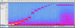 • 11 sinewave tones, again 0.127 s in length with 0.023 s of silence between tones, of the following estimated frequencies: 32, 64, 128, 256, 512, 1000, 2000, 4000, 8820, 11025, and 18000 Hz.