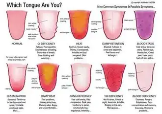 - ^ a b c d e f g h Maciocia, Giovanni (1995). Tongue Diagnosis in Chinese Medicine. Eastland Press. ISBN 978-0-939616-19-0.