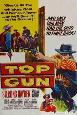 Top Gun is a 1955 American Western film directed by Ray Nazarro. The plot concerns an ex-gunslinger (Sterling Hayden) who arrives in a small town warning of an impending attack by his old gang. The film features Rod Taylor in one of his first American roles.[1]
