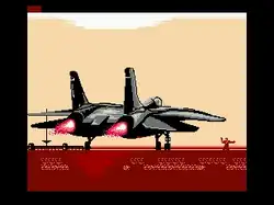 The player has unlimited machine gun ammunition and three different types of missile, each one with their own advantages. MiGs also have their own missiles, which the player must avoid or destroy. The player is presented with onscreen information such as altitude, air speed, a radar, and a fuel gauge. Once during each level, the player can call in a tanker plane to refuel the F-14 (refueling is optional in first level, but is required in the other three levels as the plane will not have enough fuel to last the entire level otherwise). Refueling is done in mid-air, and the player must align the F-14 with the fuel pump. After each level, the player must successfully land the F-14 on a U.S. aircraft carrier.[1][8][4][10]