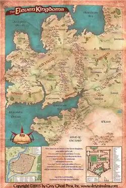 Most of the books are set in the fictional Kingdom of Gwynedd, one of the Eleven Kingdoms. The other kingdoms are Bremagne, The Connait, Howicce, Llannedd, Kheldour, Meara, Mooryn, Orsal, Tralia, and Torenth.