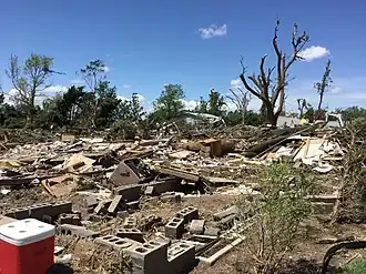 ![]() Remains of a farmhouse that was leveled at high-end EF3 strength near Great Bend, Kansas | |