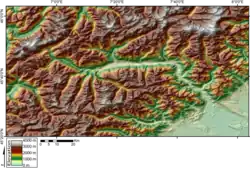 The Valle d'Aosta DOC (or Vallée d'Aoste DOC, in French[1]) is an Italian denominazione di origine controllata located in the Aosta Valley of north-west Italy. Surrounded by the Alps, the Valle d'Aosta is home to the highest elevated vineyards in all of Europe. The principal winemaking region of the Valle d'Aosta is found along the eastern banks of the Dora Baltea (fr., Doire baltée) river with the city of Aosta serving as the central winemaking location. The region is divided into three main vineyard areas; the upper valley, Valdigne, the central valley (locally Valle centrale in Italian, Vallée centrale in French) and the lower valley, (locally Bassa valle in Italian, Basse vallée in French). To the south is the winemaking region of Piedmont. The Valle d'Aosta is Italy's smallest winemaking region both in terms of size and production with only about 330,000 cases produced annually in the region and only 36,000 cases produced under the DOC label. Seventy five percent of the area's production is red wine made mostly from the Pinot noir, Gamay and Petit Rouge varieties. A white wine is made from the indigenous Prié blanc grape by the cooperative of Blanc de Morgex et de La Salle.[2]