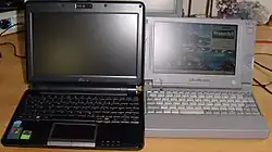 | Libretto U100 | Intel Pentium M 753 @ 1.2 GHz, 512 MB RAM (1 GB max.), 60 GB HDD (1.8in IDE / ATA 1.8" ZIF, the most common drive in this machine is the MK6006GAH), 7.2 in TFT active matrix LCD display | 210×165×29.8 | 980 |