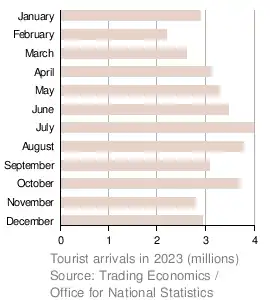 - ^ "Office for National Statistics – Overseas residents' visits to the UK". Office for National Statistics. 2010. Retrieved 14 August 2011.