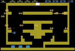 The game was designed by Jeff Corsiglia and programmed by Paul Allen Newell, who also programmed the Vectrex port of Scramble[2] and co-designed and programmed the maze algorithm serving as the basis for the 2600 game Entombed.[5]