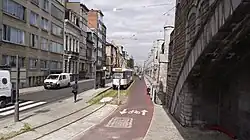 On this trajectory was, along with the opening of route 9, also built a new tram stop named Zurenborg, being located in the famous Art Nouveau Zurenborg neighborhood.[6] This stop is currently the only one in the entire Antwerp tram network making use of an island platform. Because trams in Antwerp do in general only have doors on the right side of the vehicle, the trams on route 9 are required to drive on the left side of the road when halting at the stop.