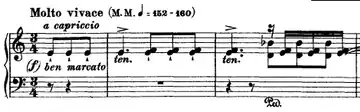 Transcendental Étude No. 2 in A minor, "Molto vivace", is the second of twelve Transcendental Études by Franz Liszt. The occasionally-used alternate title Fusées (French: “Rockets”) is not Liszt's own and was not approved by Liszt.[1][2] It was added by Ferruccio Busoni in his edition of the Études. It is a study in alternating hands, hands overlapping, both hands playing the same note alternatingly, and steep right hand leaps.
